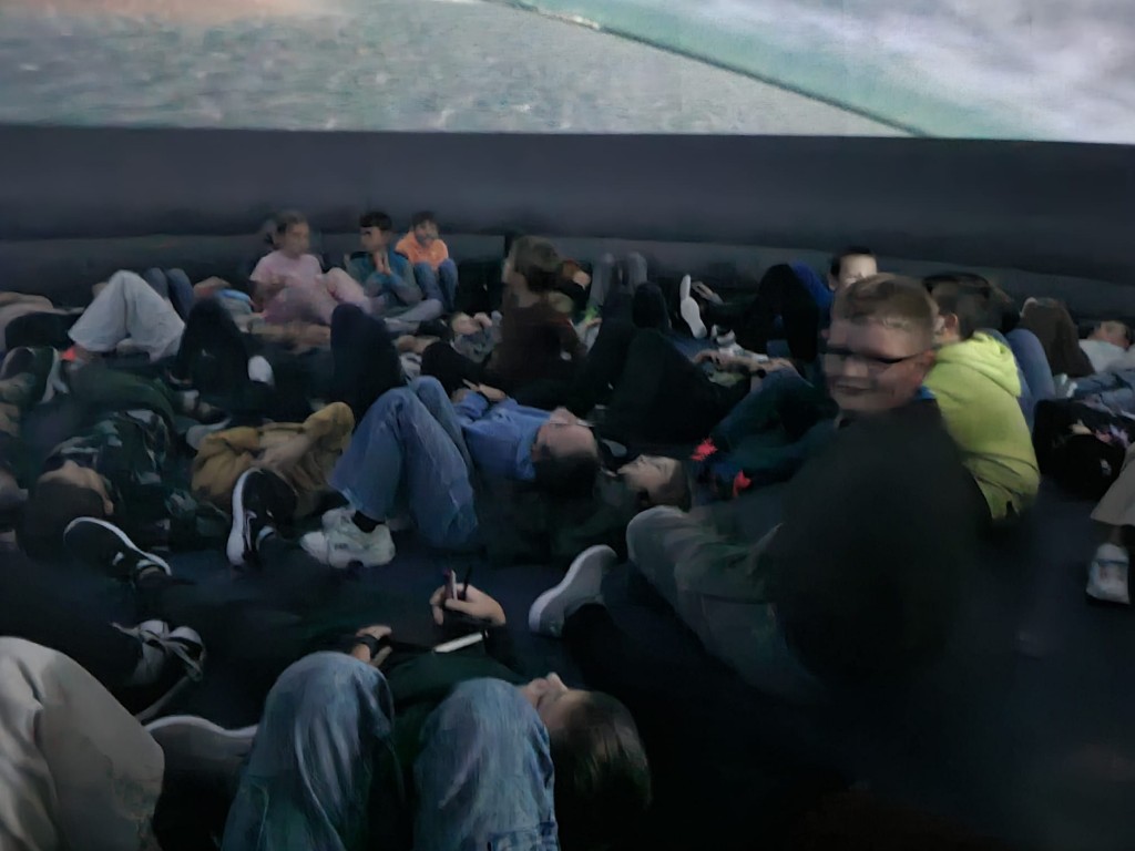 25 października uczniowie naszej szkoły mieli możliwość uczestniczenia w niezapomnianej lekcji astronomii, a to wszystko dzięki wizycie Mobilnego Planetarium. Prowadzący zajęcia przekazali wiedzę dostosowaną do wieku poszczególnych grup. Pod ogromną kopułą namiotu, przy wykorzystaniu technik multimedialnych oraz audiowizualnych nasi uczniowie podziwiali rozgwieżdżone niebo, konstelacje gwiazd oraz przyswajali wiedzę o kosmosie. Mogli podziwiać bezkres kosmosu, wraz z meteorytami oraz kometami. Wszyscy uczestnicy pokazów byli zachwyceni i z większym zainteresowaniem oraz świadomością będą obserwować wieczorami rozgwieżdżone niebo.