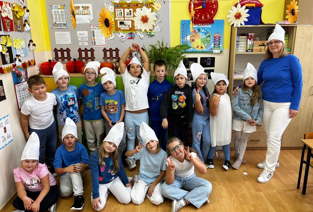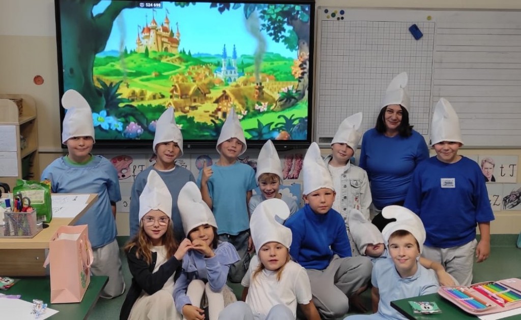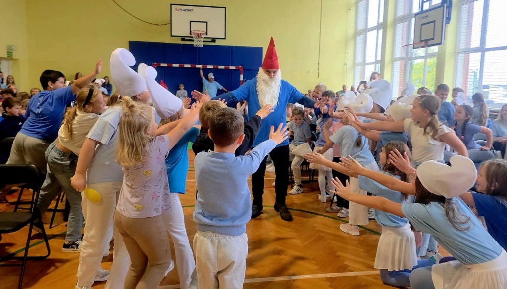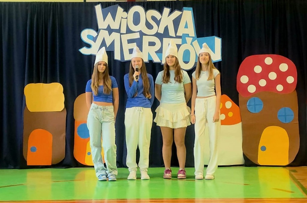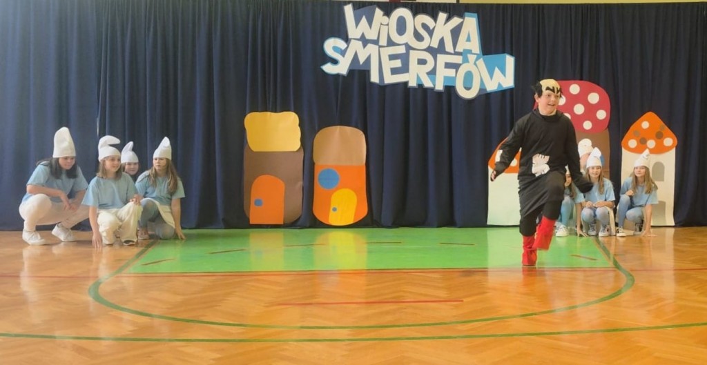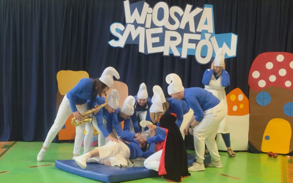 Tegoroczne smerfne obchody Dnia Edukacji Narodowej w naszej szkole na długo zostaną w pamięci uczniów, nauczycieli i pracowników. Cała społeczność szkolna przebrała się tego dnia za niebieskich bohaterów bajki – na korytarzach można było spotkać Smerfetki, Ważniaki, Osiłki, a nawet Gargamela i Klakiera! Nauczyciele również dali się porwać smerfowej atmosferze – wystąpili na akademii przebrani za Smerfy, a nasz Pan Dyrektor zyskał nowe wcielenie jako niezastąpiony Papa Smerf! Podczas uroczystości uczniowie zaprezentowali taniec, zagrali na instrumentach oraz zaśpiewali piosenkę. Na koniec krótkie przemówienia wygłosili: Przewodnicząca Rady Rodziców pani Katarzyna Olejnik oraz Pan Dyrektor. To był naprawdę smerfny dzień!