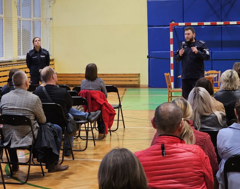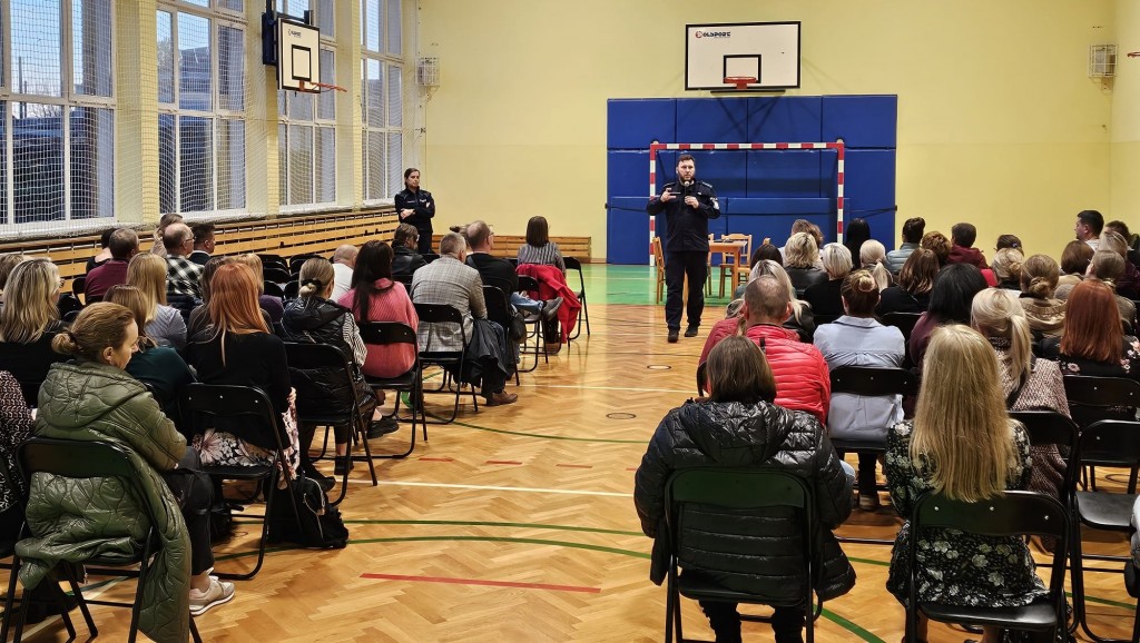 4 listopada rodzice uczniów naszej szkoły mieli przyjemność uczestnictwa w profilaktycznym spotkaniu z funkcjonariuszami gliwickiej Komendy Policji. Asp. Mateusz Piórkowski oraz st. sierż. Milena Szymańska przybliżyli słuchaczom zagadnienia związane z zagrożeniami, z jakimi mogą zetknąć się dzieci i młodzież, zarówno w świecie realnym, jak i w sieci.Omówiono m.in.: