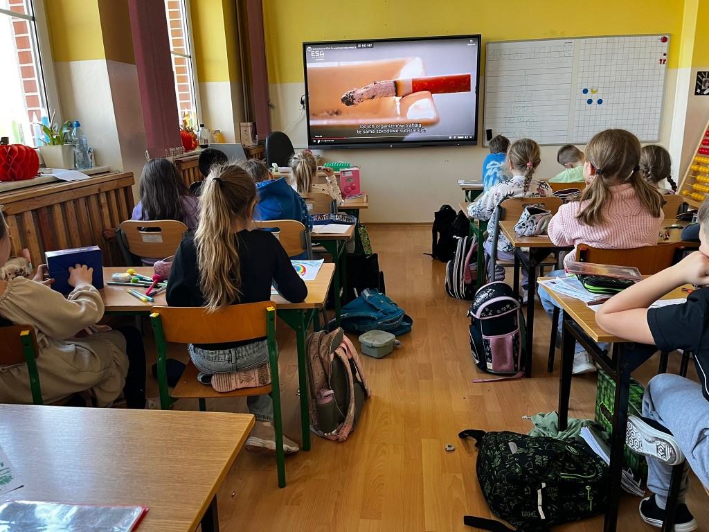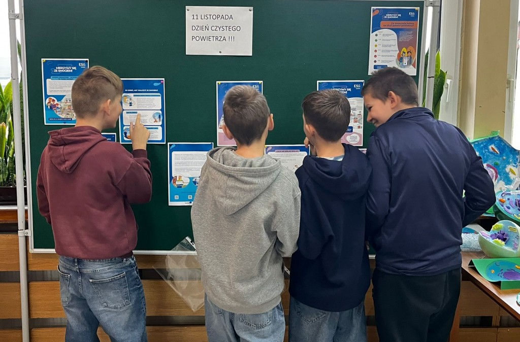 14 listopada w naszej szkole obchodziliśmy Dzień Czystego Powietrzaz ESA Nask. Z tej okazji korytarz szkolny został udekorowany tematyczną gazetką przedstawiającą znaczenie czystości powietrza oraz sposoby jego ochrony. Uczennice z szkolnego wolontariatu odwiedziły wszystkie klasy, opowiadając uczniom o tym, jak ważna jest jakość powietrza dla zdrowia ludzi i środowiska. W trakcie zajęć uczniowie rozwiązywali wykreślanki i kolorowanki związane z tematem, a także oglądali filmy edukacyjne dotyczące ochrony powietrza.Był to dzień pełen wiedzy, zaangażowania i refleksji nad tym, jak każdy z nas może dbać o czyste powietrze.