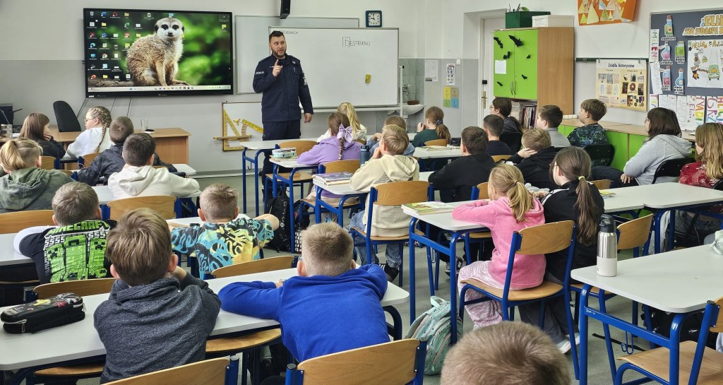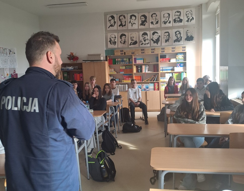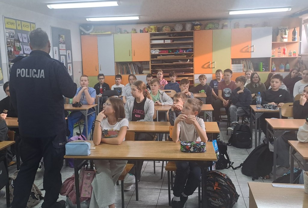 4 listopada uczniowie klas IV-VIII wzięli udział w profilaktycznych warsztatach prowadzonych przez aspiranta gliwickiej Komendy Policji pana Mateusza Piórkowskiego. Policjant poruszył zagadnienia hejtu, przemocy rówieśniczej, funkcjonowania uczniów w cyberprzestrzeni oraz odpowiedzialności prawnej nieletnich. Dziękujemy p. Mateuszowi Piórkowskiemu za wsparcie szkoły działaniach profilaktycznych.