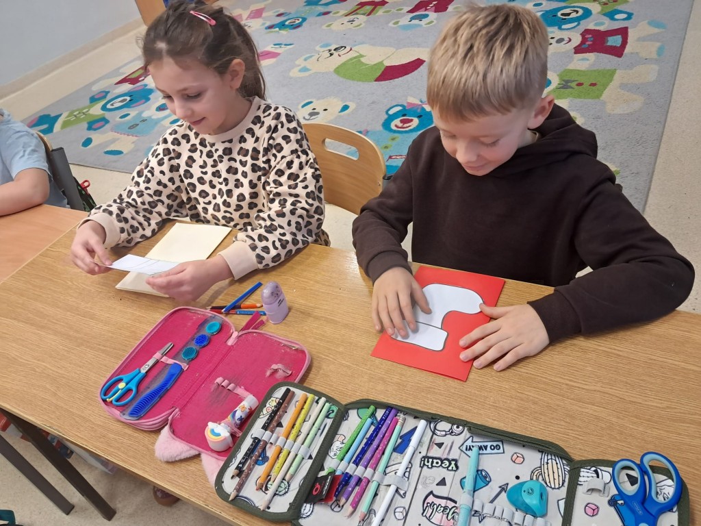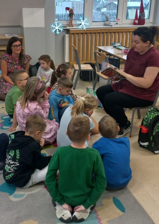 W dniach 24, 25 i 26 listopada odbyły się spotkania z książką dla uczniów klas I–III. Naszą szkołę odwiedziła Pani Sabina – bibliotekarka z Gminnej Biblioteki Publicznej, która przygotowała dla dzieci świąteczną opowieść „Samochodzik Franek szykuje święta”. Uczniowie z dużym zaciekawieniem śledzili przygody rezolutnego Franka, poznając jego przygotowania do wyjątkowego, bożonarodzeniowego czasu. Lektura wprowadziła wszystkich w świąteczny nastrój i zachęciła do rozmów o tradycjach oraz radości pomagania innym. Po wysłuchaniu historii dzieci samodzielnie wykonały kartki świąteczne, które zostaną przekazane podopiecznym Domu Pomocy Społecznej w Pilchowicach i Kuźni Nieborowskiej. Była to okazja, aby poprzez twórczą pracę okazać życzliwość i pamięć osobom starszym. Na zakończenie uczniowie podziękowali Pani Sabinie za inspirujące spotkanie oraz za to, że w tak ciekawy sposób przybliżyła im świat książek. Spotkanie pozostawiło wiele uśmiechów i wprowadziło wszystkich w przedświąteczną atmosferę.