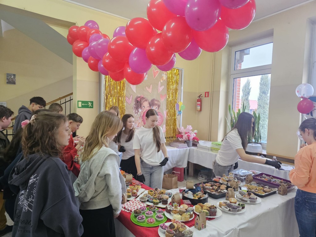 Od samego rana korytarze tętniły życiem, a kolorowe stoiska wypełniły się setkami babeczek. Akcja przyciągnęła tłumy naszych podopiecznych – od najmłodszych przedszkolaków po uczniów najstarszych klas. Okazja była wyjątkowa, bo i cel był najwyższej wagi: wsparcie rehabilitacji Marka, naszego byłego ucznia, który w wyniku wypadku stracił prawą rękę. To, co wydarzyło się podczas dzisiejszych przerw, przerosło nasze najśmielsze oczekiwania. Dzięki niesamowitej hojności i zaangażowaniu, udało nam się zebrać kwotę: 4125zł.