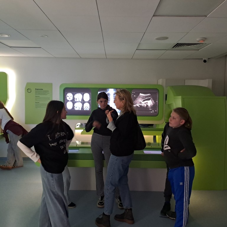 9 kwietnia grupa uczniów uczestniczących w zajęciach przyrodniczych w ramach projektu „Nowoczesna edukacja drogą do sukcesu” wzięła udział w wycieczce do Rybnika. Celem wyjazdu było przeprowadzenie zajęć w terenie, z wykorzystaniem różnorodnych form, które przybliżyły uczniom świat nauki. Po przyjeździe na miejsce każdy uczeń otrzymał fragment planu miasta oraz kartę zadań, którą miał zapełnić wiadomościami zdobytymi podczas wycieczki. Zajęcia rozpoczęły się więc od doskonalenia umiejętności odczytywania rozkładu jazdy autobusu komunikacji miejskiej oraz oswajania się z papierową mapą: wskazanie punktu początkowego wycieczki oraz zaznaczenie na niej kolejnych elementów spaceru wraz z miejscem docelowym. Teatr Ziemi Rybnickiej, Bazylika św. Antoniego, Rynek, Edukatorium Juliusz to miejsca, które podczas przystanków były okazją do snucia opowieści nie tylko przez p. Justynę - własnymi wspomnieniami dzielili się również uczniowie. Miejscem docelowym było Edukatorium Juliusz. Tu na uczestników wycieczki czekały warsztaty „Czy Twoje płuca potrafią pływać?” – film edukacyjny, opowieść prowadzącej oraz część plastyczna, podczas której uczniowie tworzyli model płuc. Dopełnieniem pobytu w tym miejscu było zwiedzanie wystawy stałej Medycyna i Farmacja. Na 4 kondygnacjach dawnego rybnickiego szpitala zaaranżowano oddziały szpitalne, salę operacyjną, gabinety lekarskie a wszystko wyposażone w ciekawe eksponaty dawne i współczesne. Szczególnie interesujące były również interaktywne stanowiska edukacyjne, gdzie uczniowie mogli wszystkimi zmysłami poznać tajniki nauk medycznych. Spędziliśmy prawie 3h oglądając, dotykając, manipulując a nawet wąchając świat nauki. To był dzień pełen śmiechu i wrażeń, pokazujący, że zdobywać wiedzę można nie tylko w szkolnej ławce.