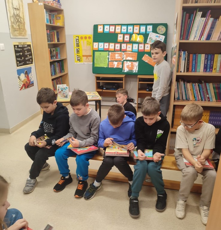 W dniach 14–15 kwietnia 2026 roku w naszej bibliotece szkolnej odbyło się uroczyste pasowanie na czytelnika. Z radością powitaliśmy w gronie czytelników uczniów klas 1a i 1b. Pierwszoklasiści wykazali się dużą wiedzą i umiejętnościami, wyśmienicie radząc sobie ze wszystkimi przygotowanymi zadaniami. Dzieci bez trudu rozpoznawały litery, sprawnie ułożyły hasło „biblioteka”, a także doskonale poradziły sobie ze słuchaniem i czytaniem wyrazów. Dużym zaangażowaniem wykazały się również podczas układania w odpowiedniej kolejności bohaterów wiersza „Rzepka” Juliana Tuwima. Nie zabrakło także zabawy – uczniowie z powodzeniem ułożyli baśniowe puzzle oraz dopasowali tytuły do znanych baśni.