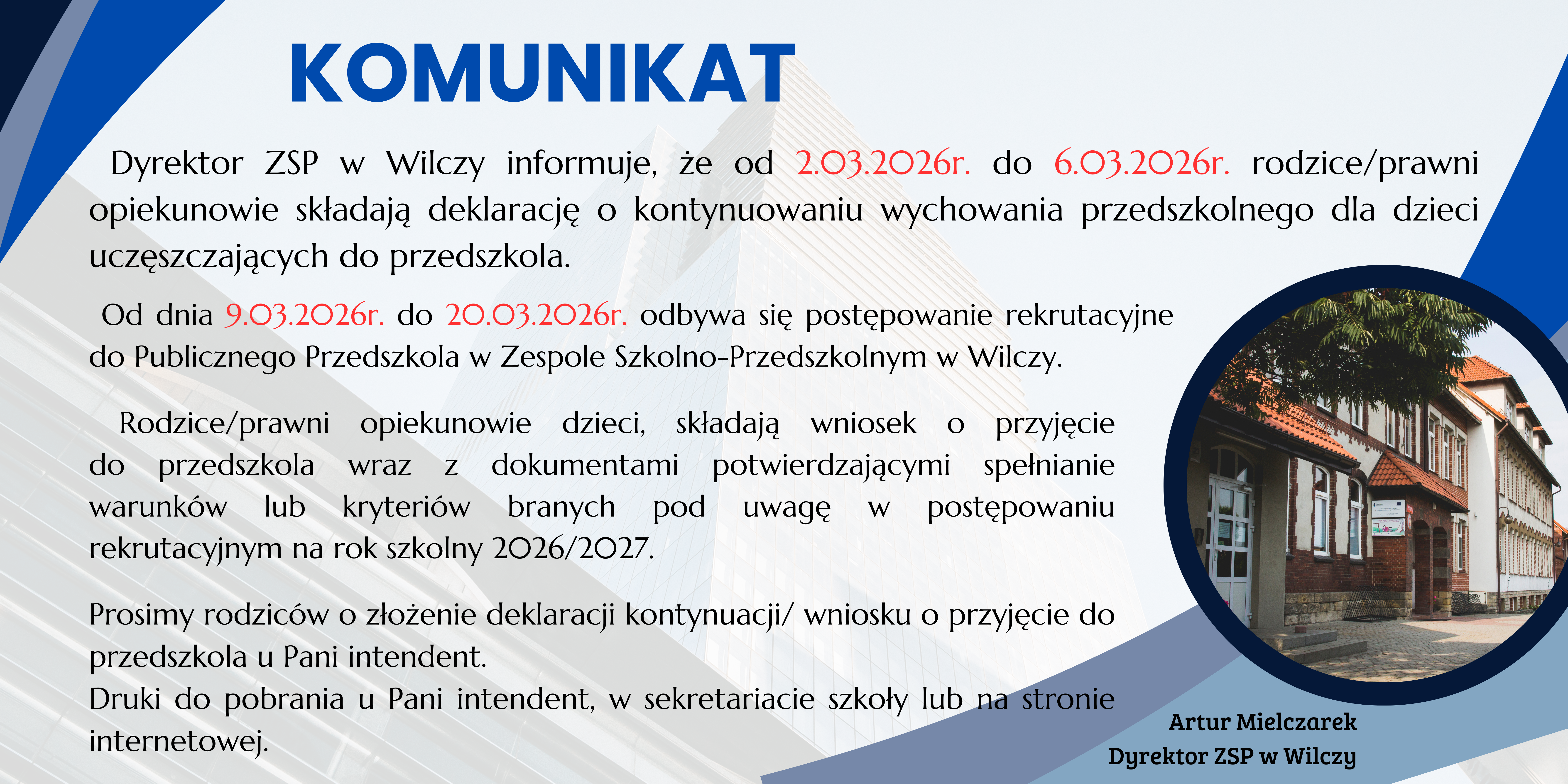 Druki do pobrania znajdują się w zakładce REKRUTACJA